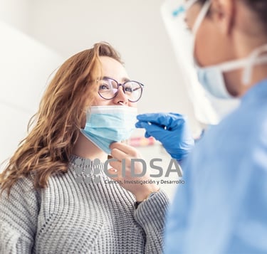 Es la forma mas precisa para comprobar infeccion del virus causante del COVID-19. Es una prueba molecular que se aplica mediante un hisopo tomando muestras en la fosa nasal y garganta.